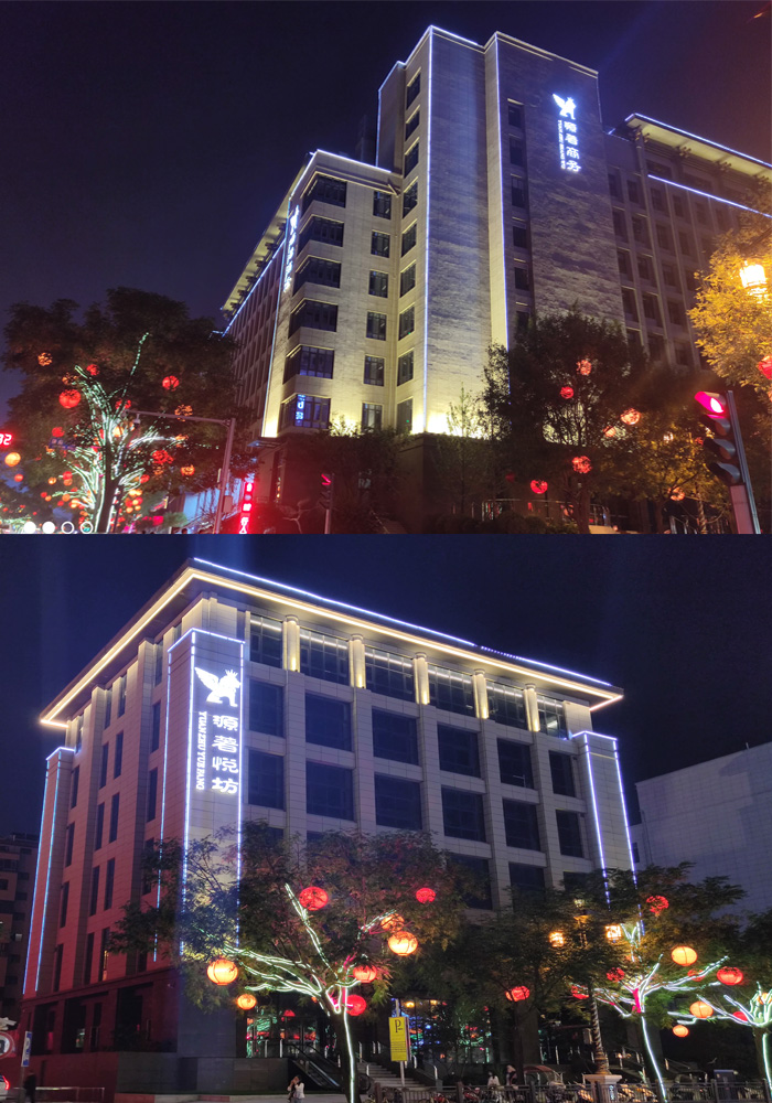 簡介—— 陜西西安曲江源著項目位于西安市雁塔區(qū),比鄰大雁塔,是公寓住在,周邊配套完善。該項目是我是2021年9月開始施工的項目,主要是對公寓樓做線條勾勒,將建筑的主體效果體現(xiàn)出來,樓頂采用的是線條勾勒以及頂部打亮,整體體現(xiàn)出簡潔大氣的夜景亮化效果。